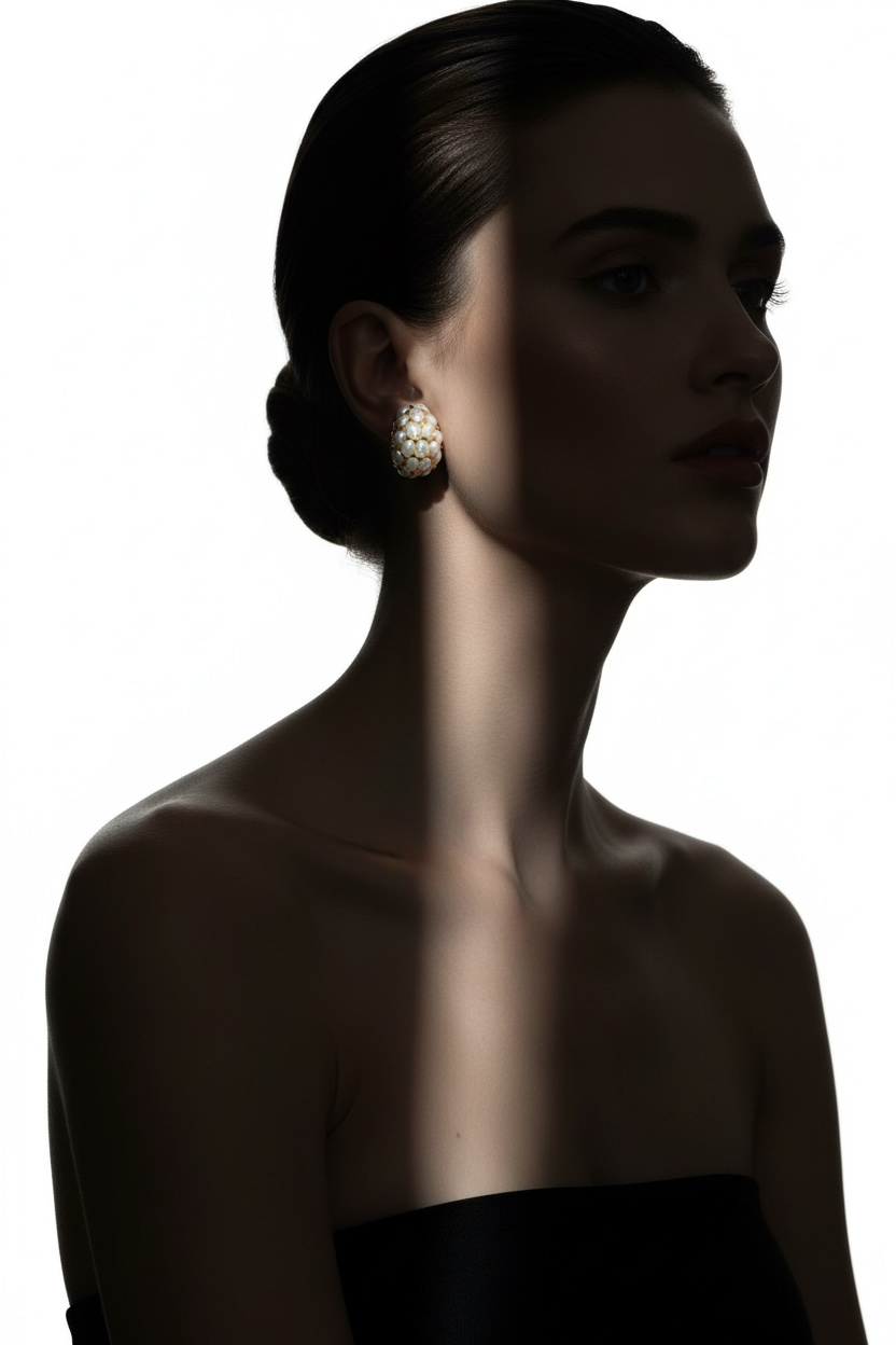 Gli Orecchini Giusy Clip uniscono fascino rétro e raffinatezza contemporanea. La forma ovale, avvolta da perline luminose, crea un effetto tridimensionale prezioso e delicato, perfetto per valorizzare il viso con un tocco di eleganza senza tempo.