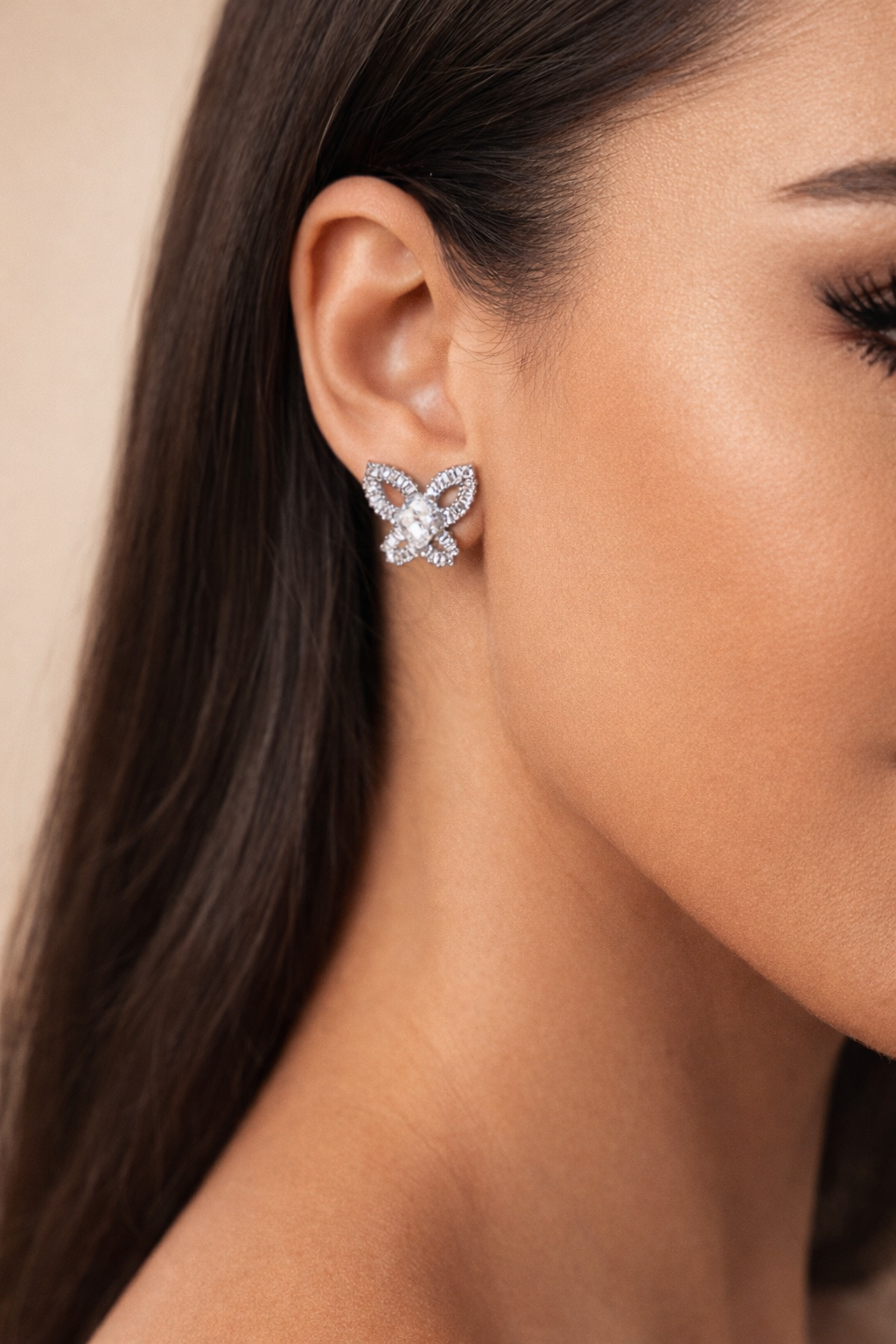 Orecchini a forma di farfalla rivestiti di strass con strass ovale centrale