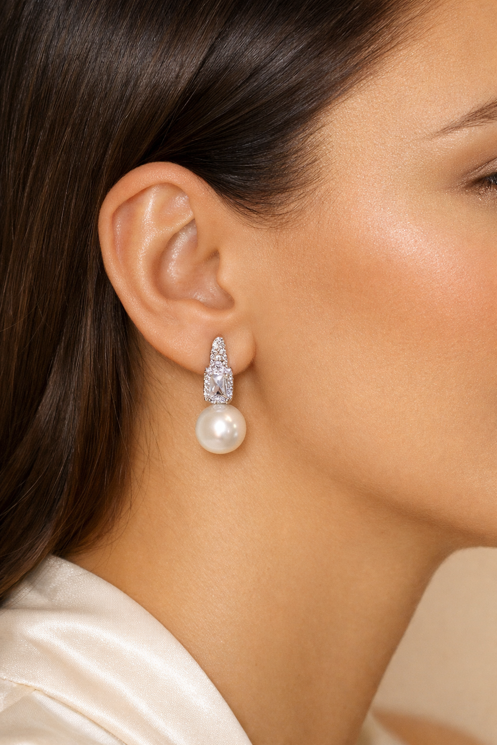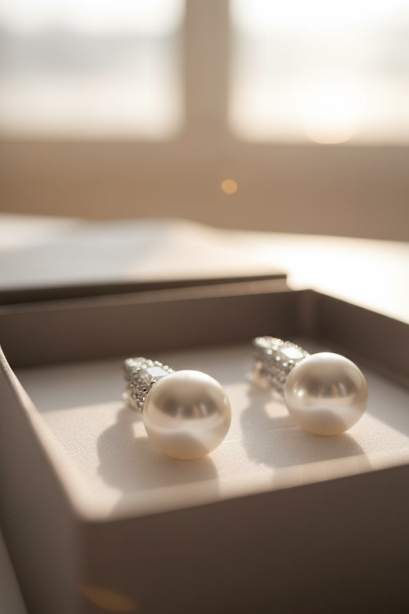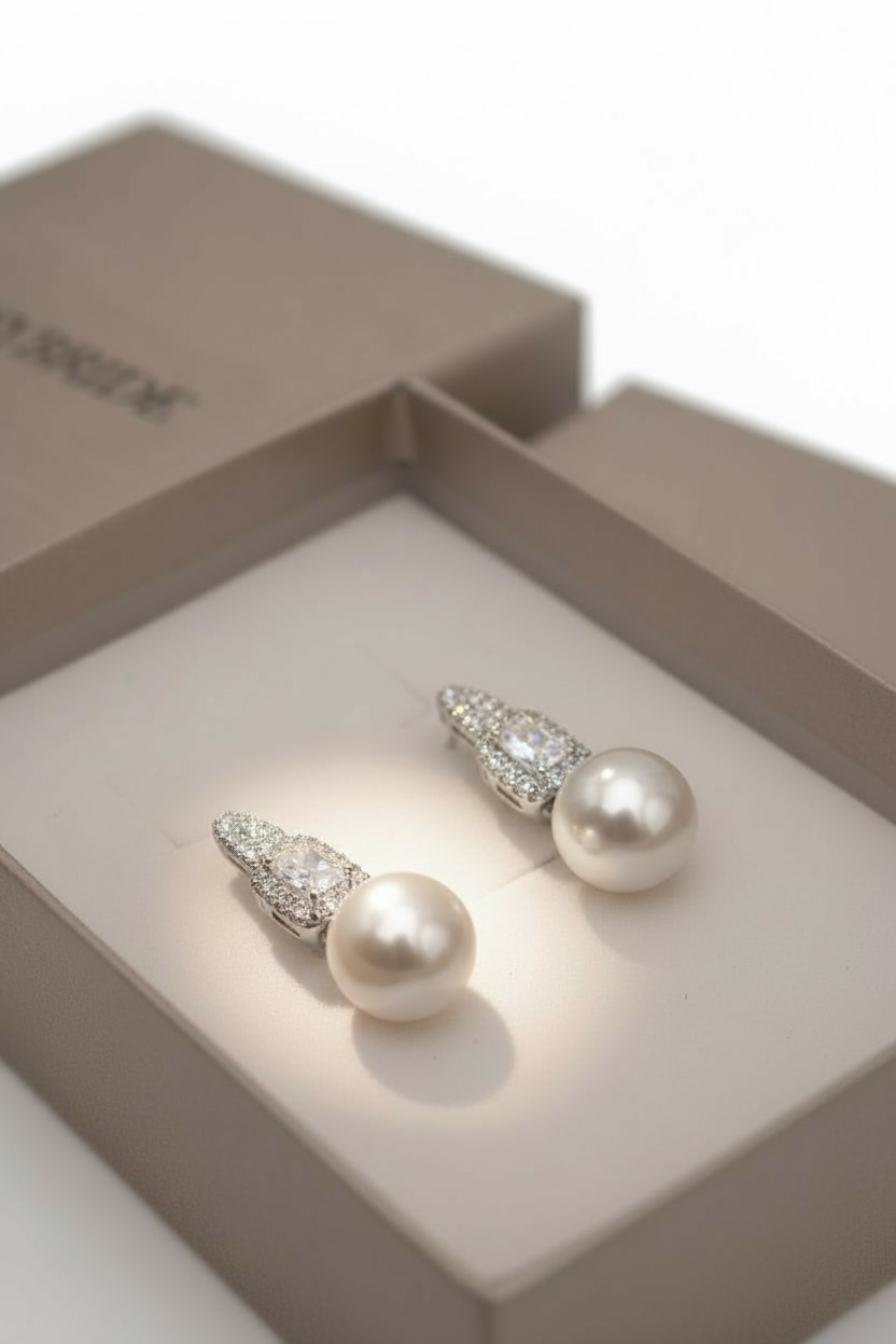 Realizzati in ottone finemente lavorato, illuminati da strass scintillanti e impreziositi da una perla dal finish impeccabile, accompagnano il volto con una luce dolce e sofisticata.