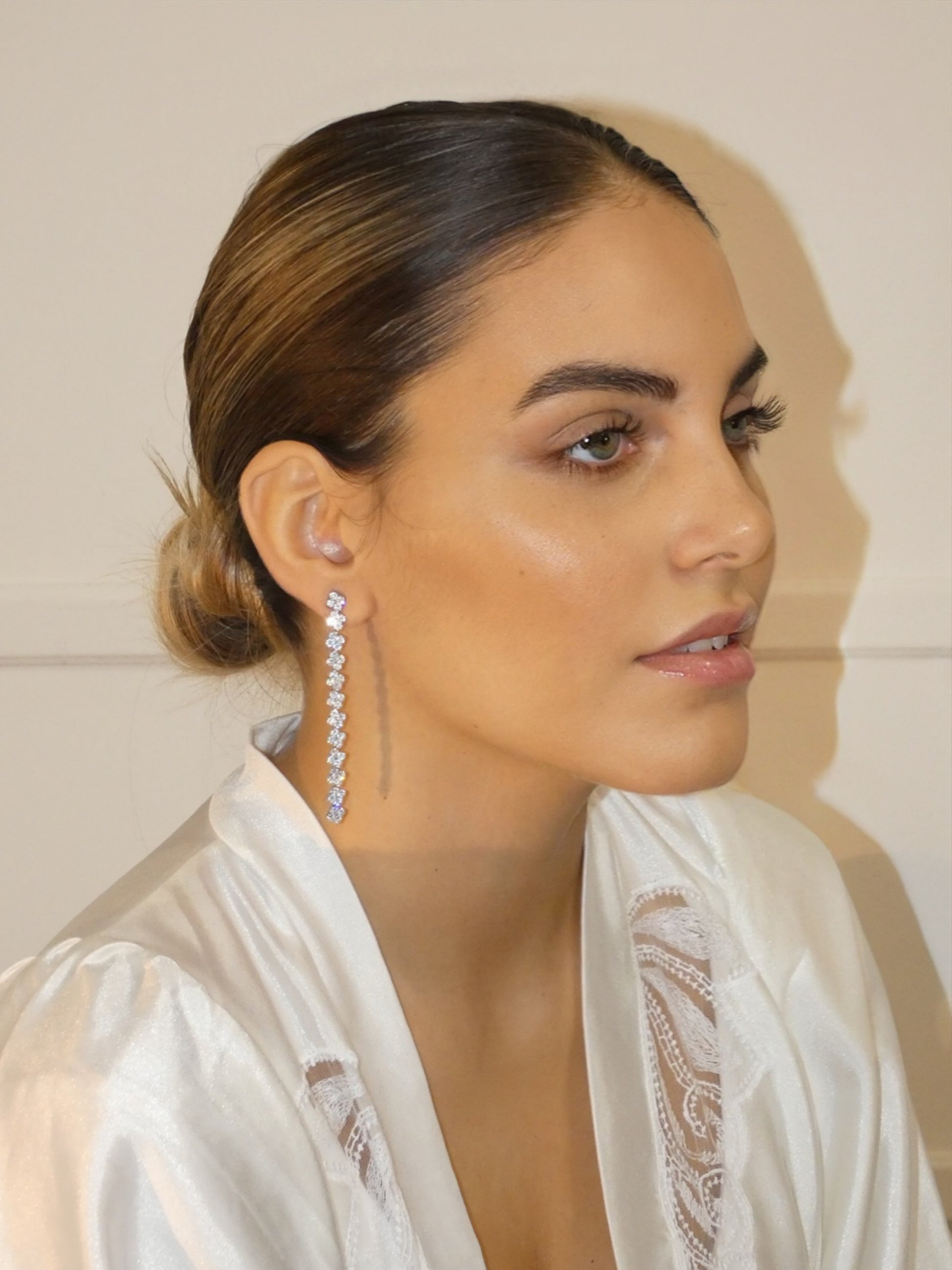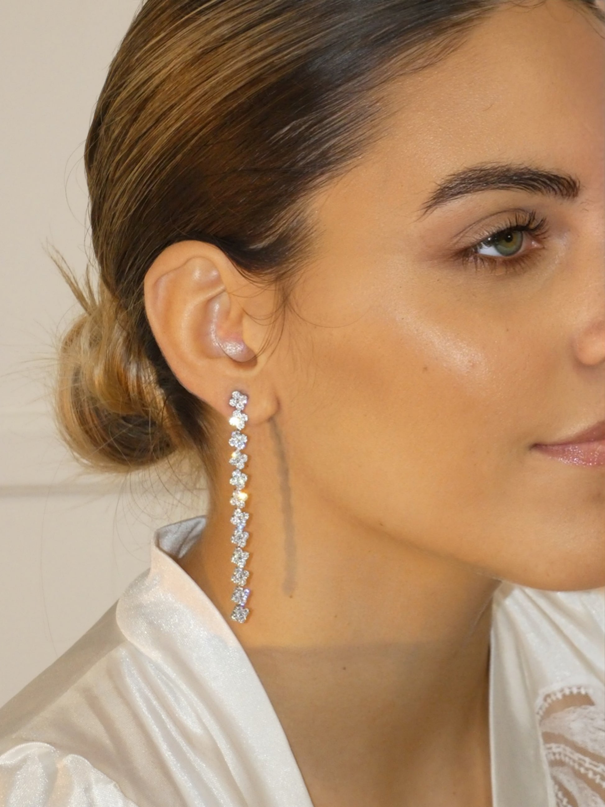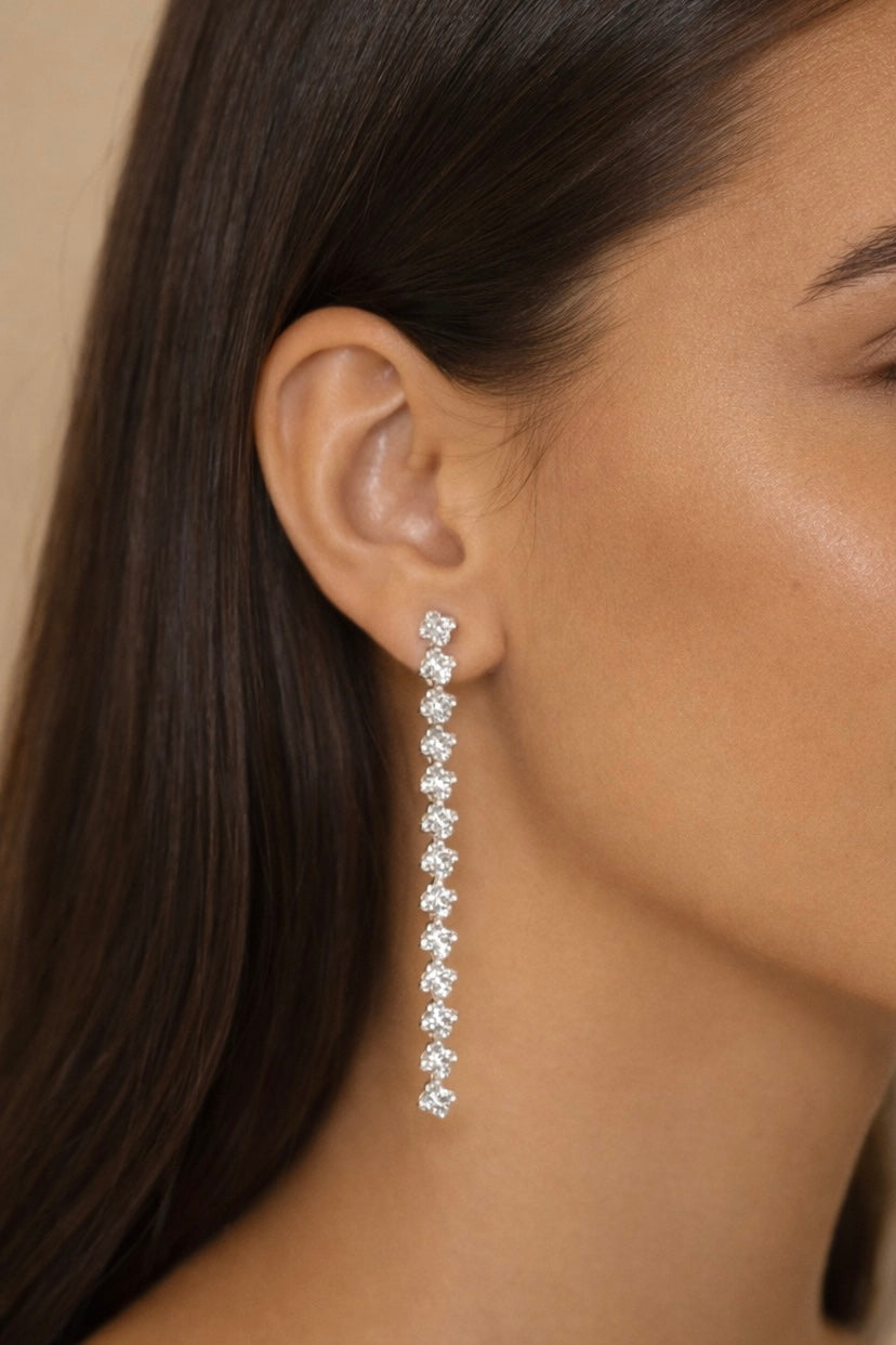 Gli Orecchini Lucea sono realizzati in acciaio lucido e impreziositi da una sequenza di strass scintillanti che catturano la luce ad ogni movimento. Il loro design slanciato e raffinato valorizza i lineamenti, creando un effetto elegante e femminile, perfetto per cerimonie, eventi o per aggiungere un tocco glamour al look quotidiano.