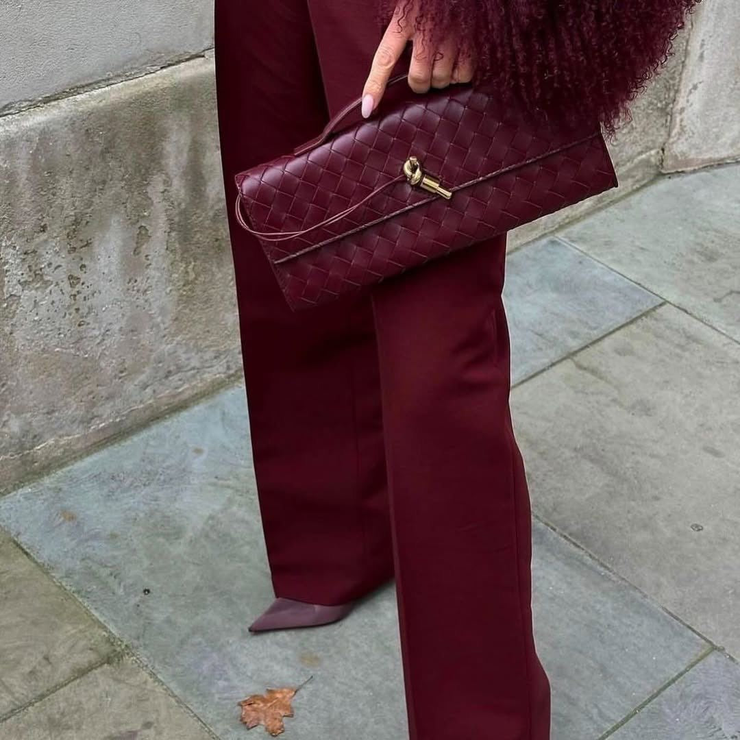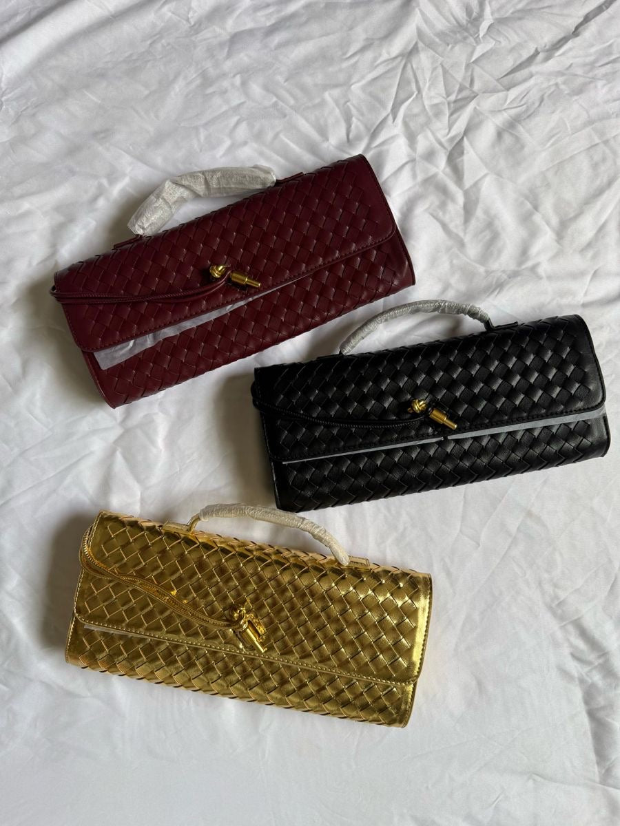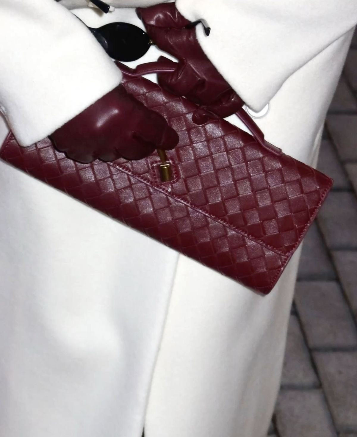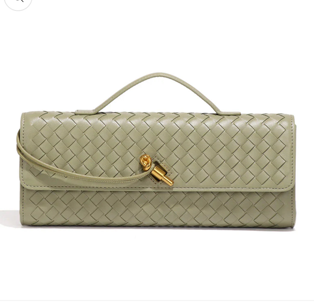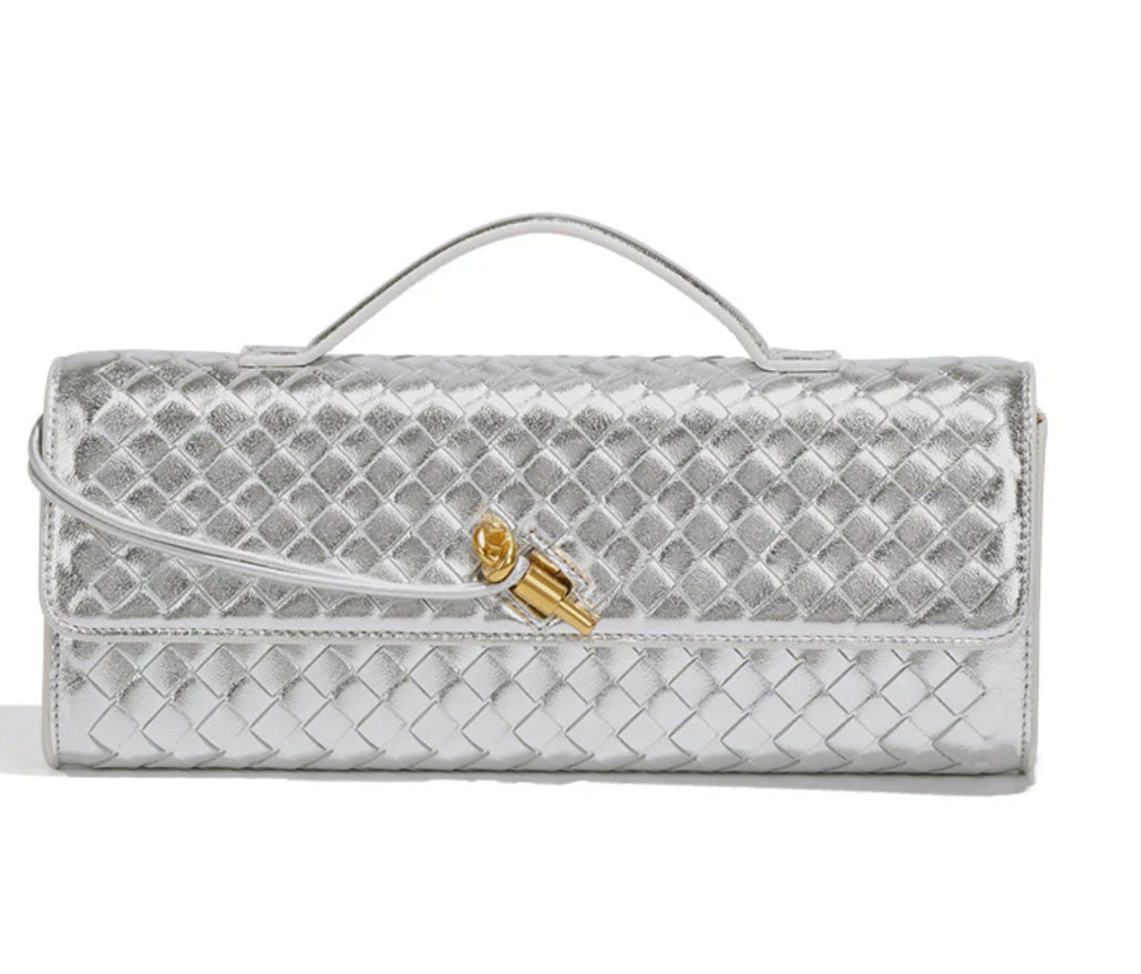 La lavorazione intrecciata a mano, dal design essenziale, incontra la chiusura a chiave dorata, segno distintivo di un lusso sobrio.