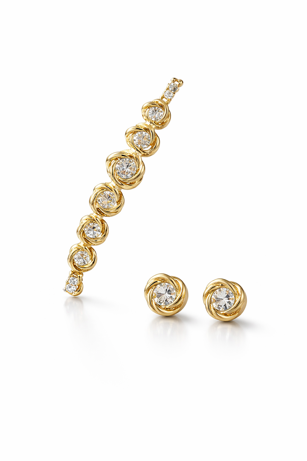 Realizzato in ottone color oro con strass luminosi, è leggero e confortevole, ideale da indossare tutto il giorno. Un gioiello versatile che valorizza ogni stile, dalla sposa moderna alla donna che ama dettagli sofisticati ma essenziali.