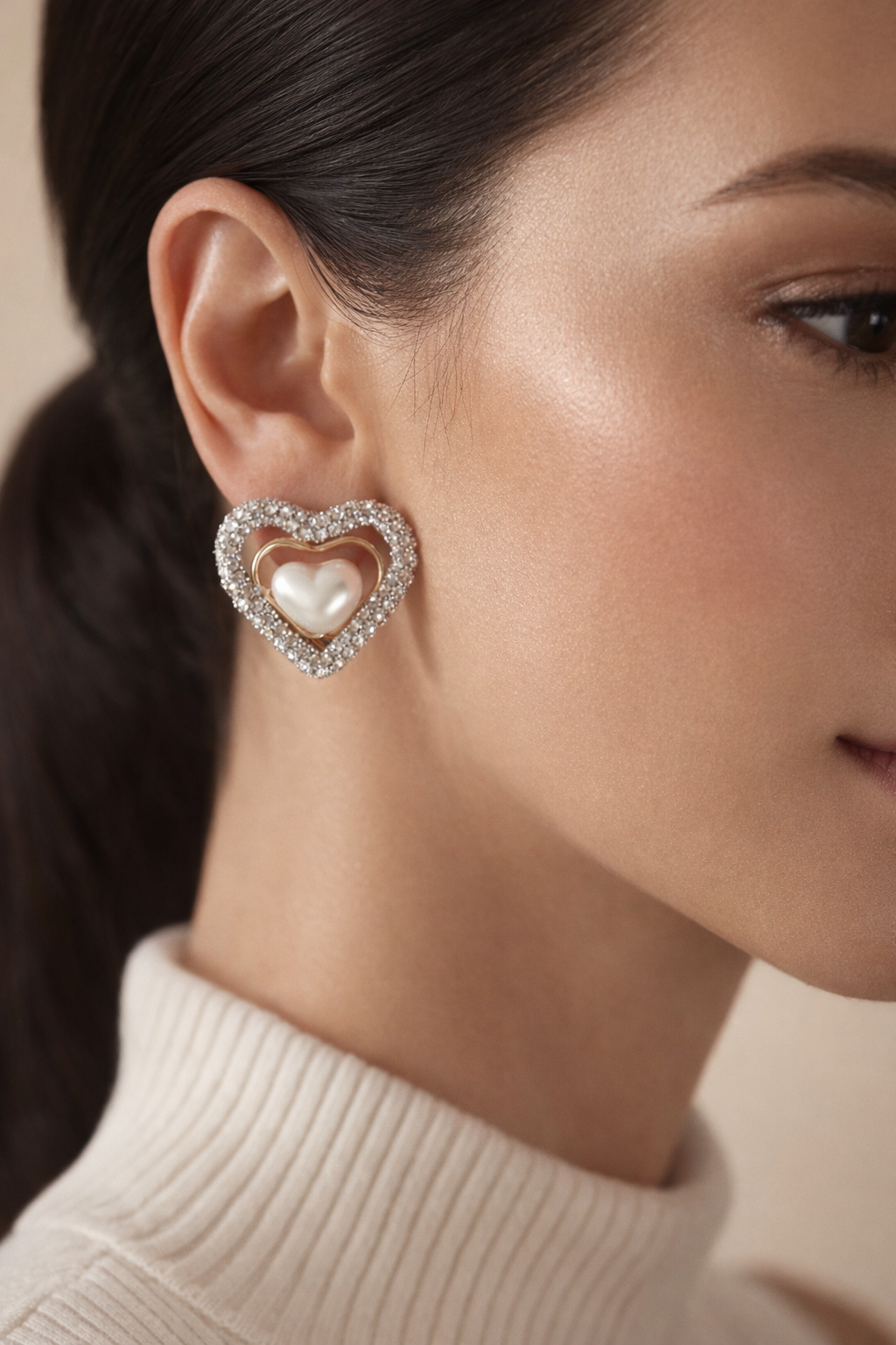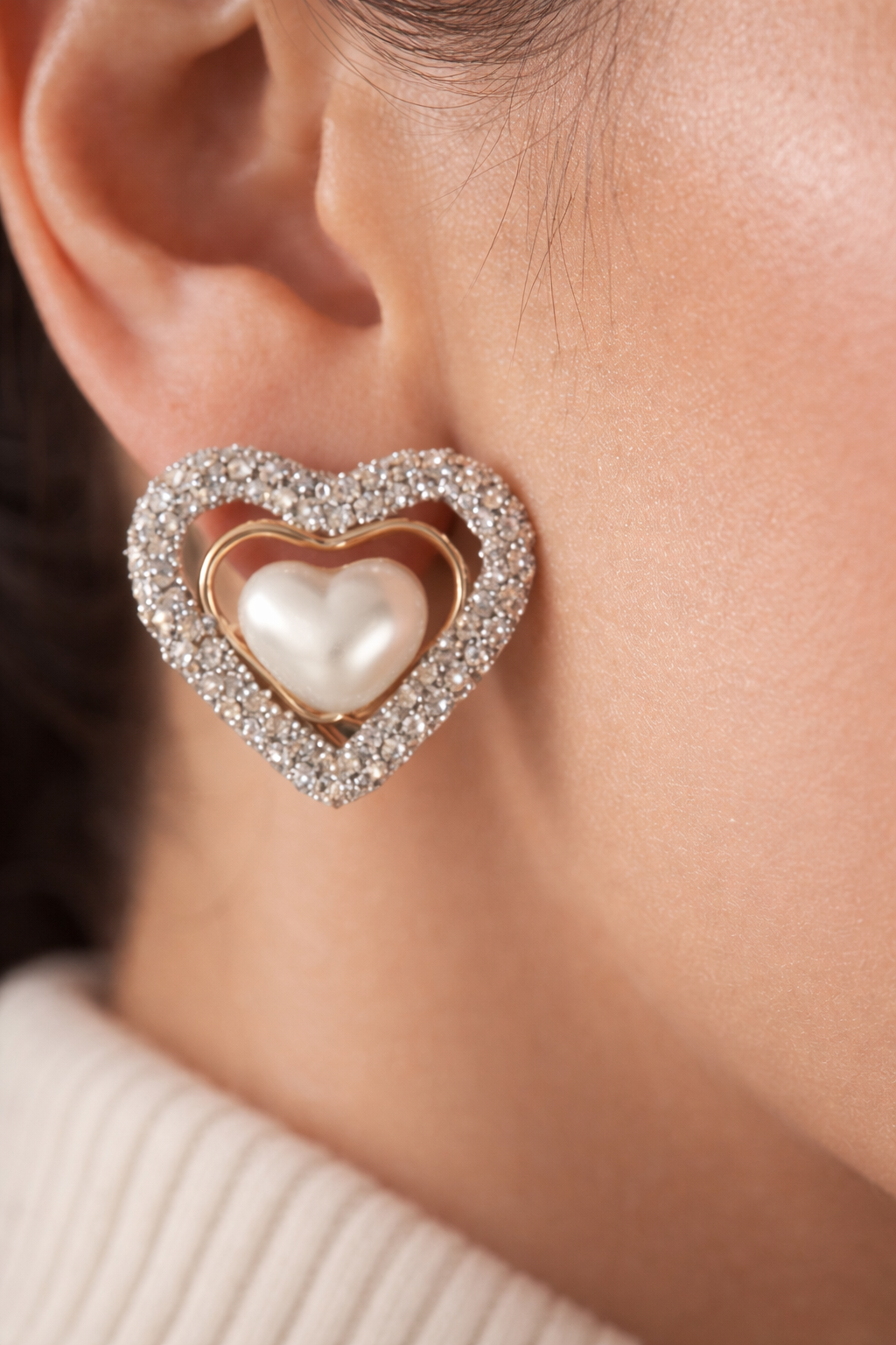 Il design a cuore, impreziosito da una cornice di strass scintillanti e una perla centrale dal finish madreperlato, evoca un’estetica romantica e sofisticata, perfetta per una donna che ama distinguersi con grazia.