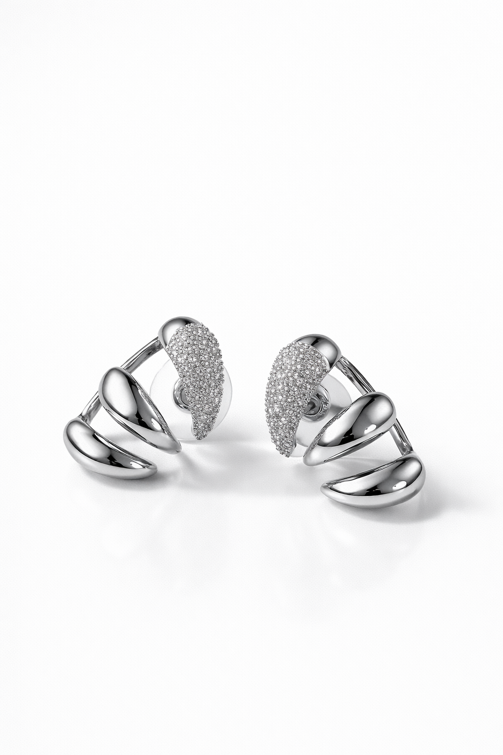 Realizzati in acciaio inossidabile di alta qualità, questi orecchini uniscono resistenza e raffinatezza. La struttura avvolgente valorizza il profilo dell’orecchio, mentre le superfici lucide e i dettagli luminosi creano un equilibrio perfetto tra modernità e femminilità.
