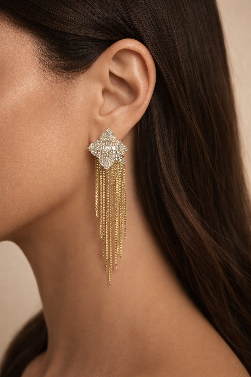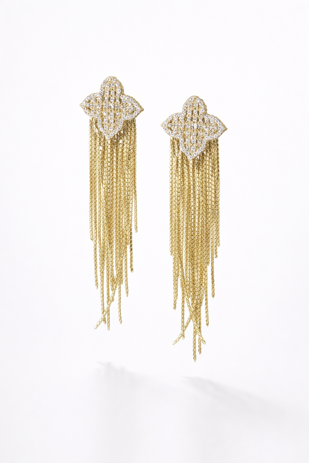 Orecchini con fiore in strass e pendenti color oro