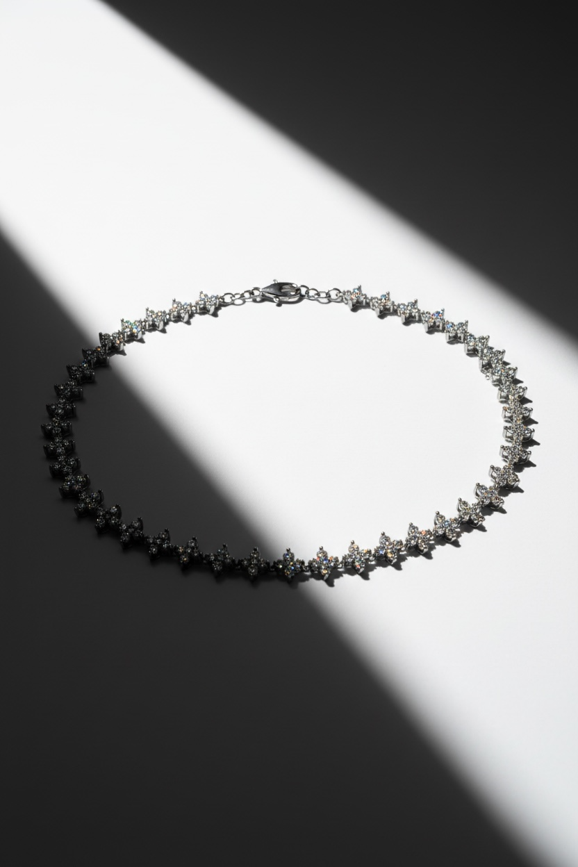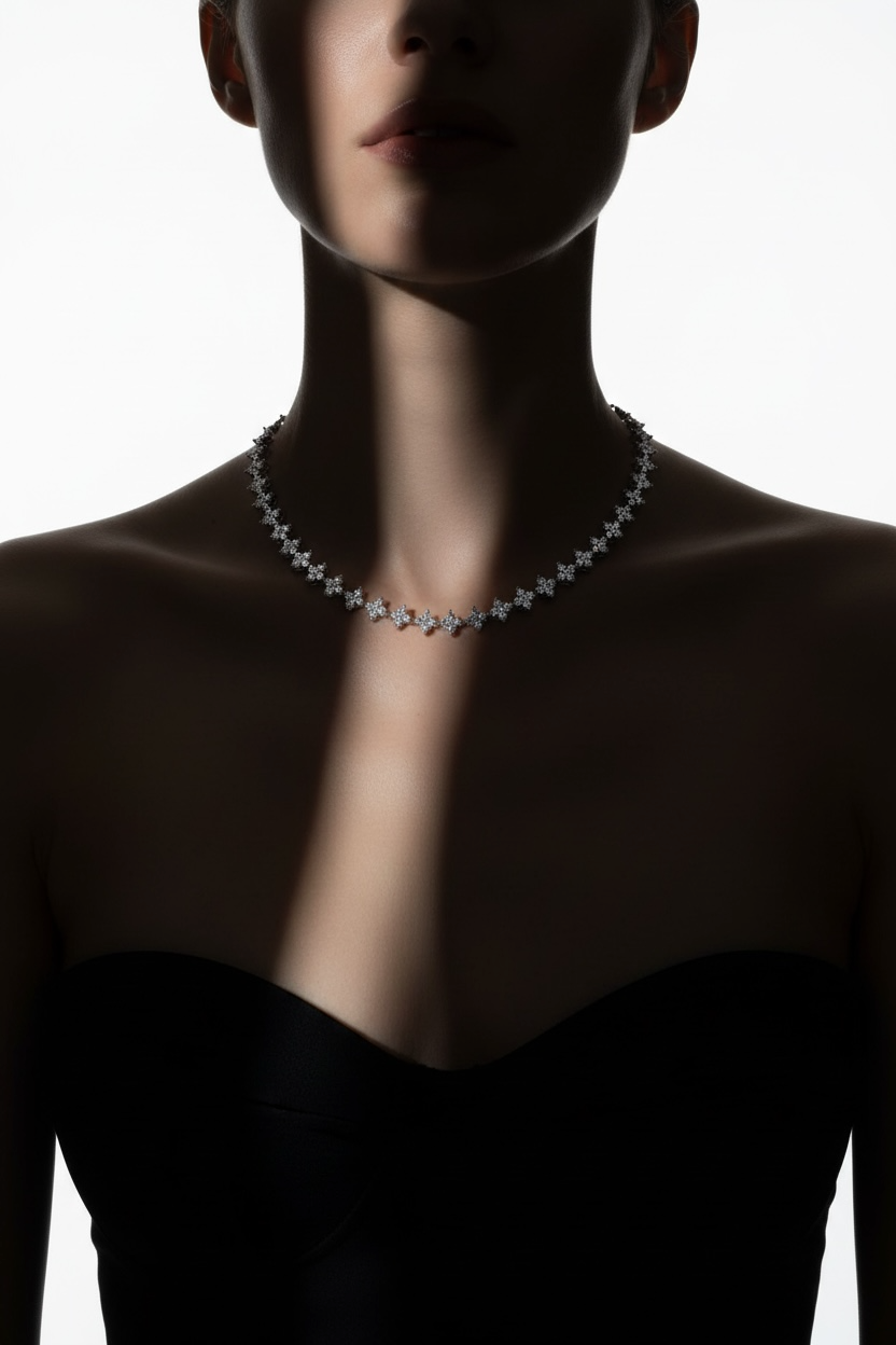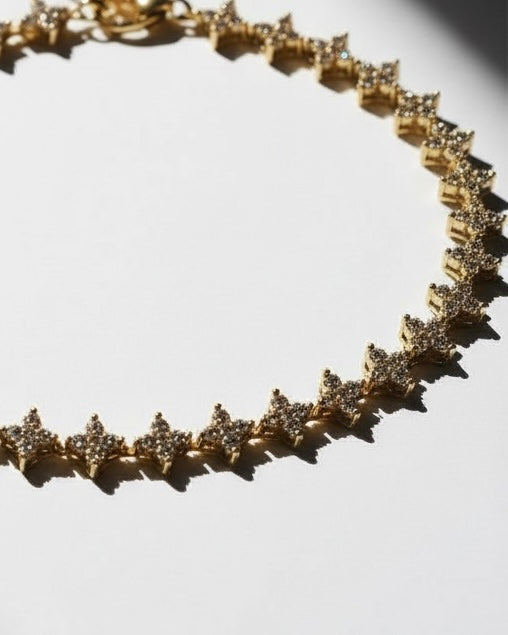 Un gioiello dal fascino luminoso, pensato per valorizzare con delicatezza ogni look. La collana Kylie è realizzata in ottone di qualità e impreziosita da finti strass disposti in una composizione raffinata che richiama piccole stelle di luce.